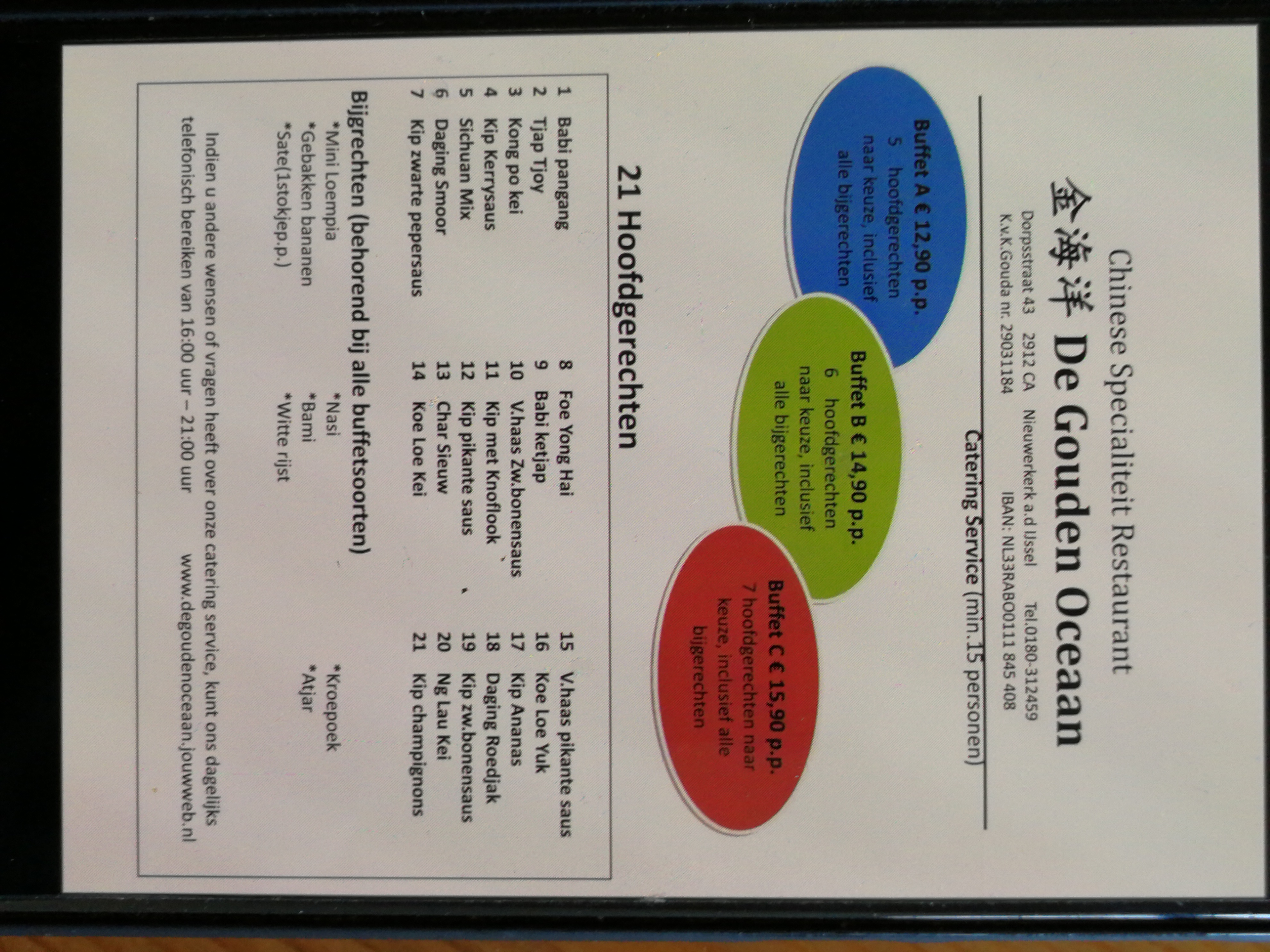 Als u graag gebruik wilt maken van onze Catering Service, kunt u ons altijd bellen naar het telefoonnummer 0180-312459 van dinsdag tot en met zondag van 16:00 tot 21:00. Ook kunt u gerust langskomen om te bespreken.